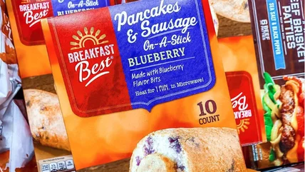 If imitation is the sincerest form of flattery, then Jimmy Dean must be blushing right now. Aldi, the popular grocery chain known for its affordable prices, has introduced a breakfast item that looks nearly identical to Jimmy Dean's famous pancake and sausage on a stick. The product, which Aldi is calling by the same name, "Pancakes & Sausage on a Stick," features a buttery pancake wrapped around a savory pork and chicken sausage link that's skewered onto a stick. Sound familiar?