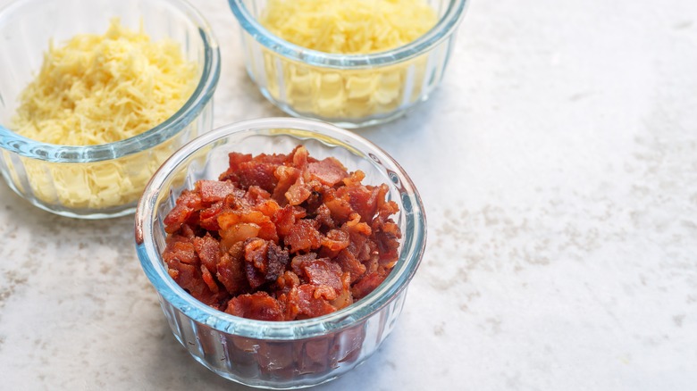 Adding a little extra crunch to the topping of creamed corn can also distract from a less-than-favorable consistency. Creamed corn is usually one-dimensional in terms of texture, but with the inclusion of a crispy ingredient layered on the top, you can easily develop a crunchy bite. Bacon pieces can achieve this while adding a little meatiness to each mouthful. Just fry the bacon first, chop it into pieces, and sprinkle over the creamed corn before baking.