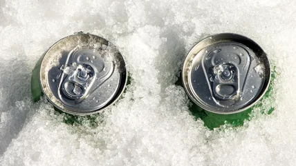 If you do find yourself with some frozen beer, but you don't want to just waste the can completely, there are a few different thawing methods that may salvage the drink. If you have time to wait, remove the beer from the freezer and place it in the fridge. After resting in the fridge for 12 to 24 hours, the beer will have had enough time to return to liquid form.