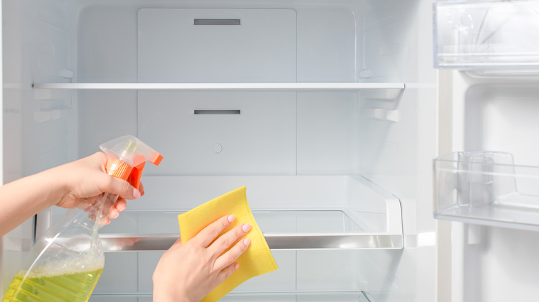 After you move the items from the freezer to a cooler or other receptacle out of the way, you're going to want to use plenty of hot water — not just for general cleaning, but to remove any chunks of ice that may build up on the sides or floor of the freezer. Hot water is also key to removing any sort of sticky puddles — think melted ice cream and spilled drinks — as normal sponges may not be able to "melt" through the half-frozen substance as effectively. You can use whatever sort of cleaning solution you like, just so long as the water remains hot.