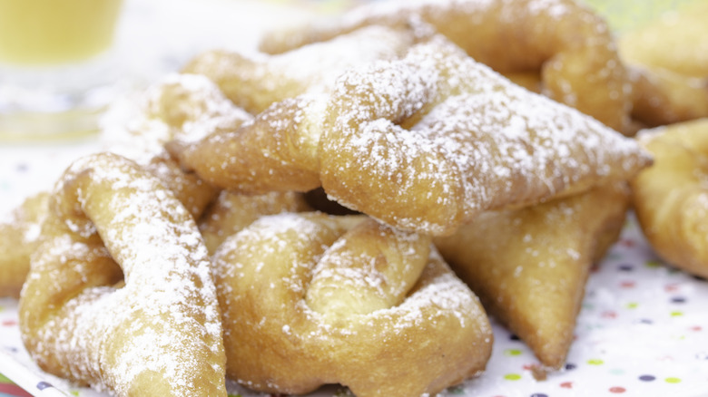 In the wild world of fritters, which can come in endless combinations of flavors and textures, sometimes you want something basic but delicious. That's where beignets come in. These small square doughnuts are made by taking choux pastry, a light form of dough made from flour, eggs, water, and butter, and deep-frying them. The pastry squares then puff up and become golden brown before being dredged in powdered sugar.
