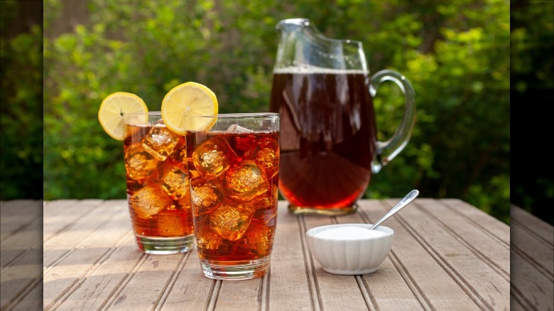 Largely because of South Carolina's mass production of tea (to this day!), sweet tea became a staple of the South. Then when the Prohibition era hit the South, people tried to come up with mocktails or beverages, which led to adding sugar and fruit to iced tea for extra sweetness. Adding sugar to iced tea then became a tradition. In a piece by Adrian Miller written for First We Feast in 2016, he argues that "no drink represents Southern culture like sweet tea." Not only does he explain the aesthetic of sweet tea, but also that most sweet tea made outside of the South isn't exactly nailing it. Indeed, when sweet tea is made "correctly," it is the ultimate Southern beverage.