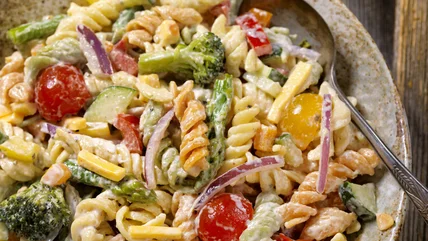 While it can be enjoyed any time of year, pasta salad has a special spot on the table when it comes to summertime dishes and evening barbecues. The cold, refreshing salad is also one of the most customizable recipes around. You can easily make a pasta salad with a box of pasta you have in the pantry, plus a variety of fresh veggies, herbs, and condiments in your fridge.