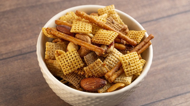 Chex Mix is savory, crunchy, and downright addictive — and it's been a hit at parties and gatherings for decades. The original recipe appeared in an issue of Life Magazine in 1952 — only a couple of years after Chex cereal hit the market — and immediately became an American snack staple. Aside from being easy to prepare, the recipe was also inexpensive to make and serve to a large number of guests.