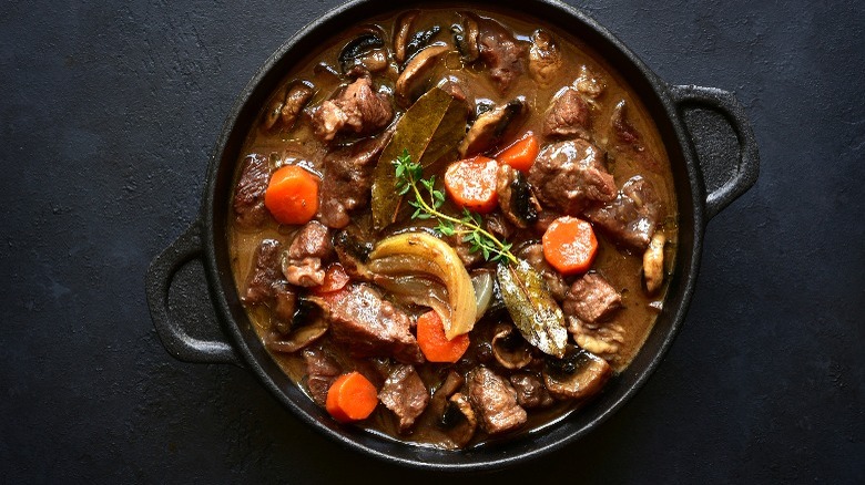 That is, until 1961 when Julia Child's wildly popular TV show "The French Chef" brought Beef Bourguignon into the spotlight. The recipe was introduced to American home chefs on a wide scale a few years earlier when it was published in the hit cookbook "Mastering the Art of French Cooking," written by Child, Simone Beck, and Louisette Bertholle. When Child herself prepared her Beef Bourguignon on television, it was well received as an elegant and sophisticated option for dinner parties and special occasions.