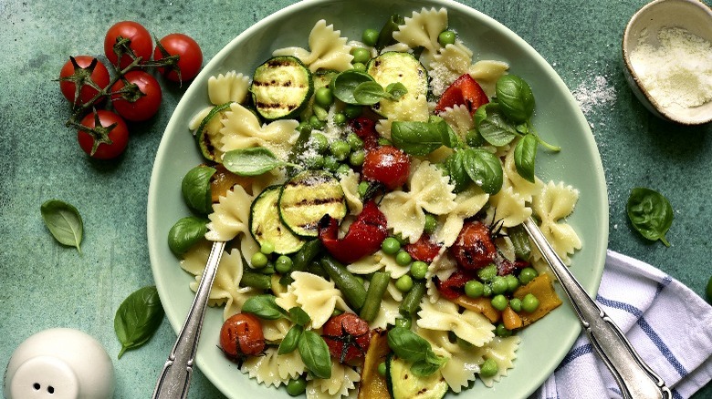 While Pasta Primavera may seem as quintessentially '70s as shag carpeting, the dish actually has a somewhat complicated history behind the scenes. This vibrant pasta plate was originally prepared with spaghetti coated in a buttery, creamy sauce and tossed with a variety of fresh vegetables, like string beans, tomatoes peas, asparagus, pine nuts, and broccoli.