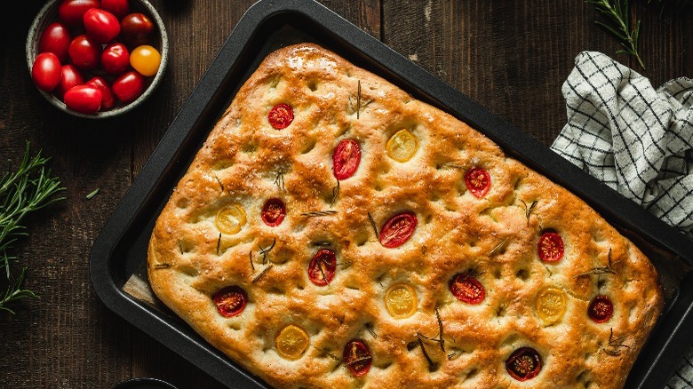 It's no doubt that Mediterranean food was all the rage in the late '90s, and focaccia bread, an Italian flatbread with a pillowy texture and flavorful toppings, was no exception. Americans were clamoring for flavorful and healthy food as a contrast to the fast food and ultra-processed fare that was beginning to dominate the country's diet. Homemade artisanal bread like focaccia was the perfect answer to traditional grocery store white bread.