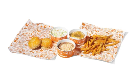 In celebration of this eating experience, some restaurants are jumping on the trend and creating versions of girl dinners for customers. The first chain stepping up to that plate is Popeyes. The chicken chain has created a "girl dinner" menu featuring many of its famous sides. Southern mac & cheese, flaky biscuits, mashed potatoes with cajun gravy, spicy fries, and more are on the menu. If you're craving Southern cooking, this one's for you. And if you're skeptical of this practice, let us break it down.