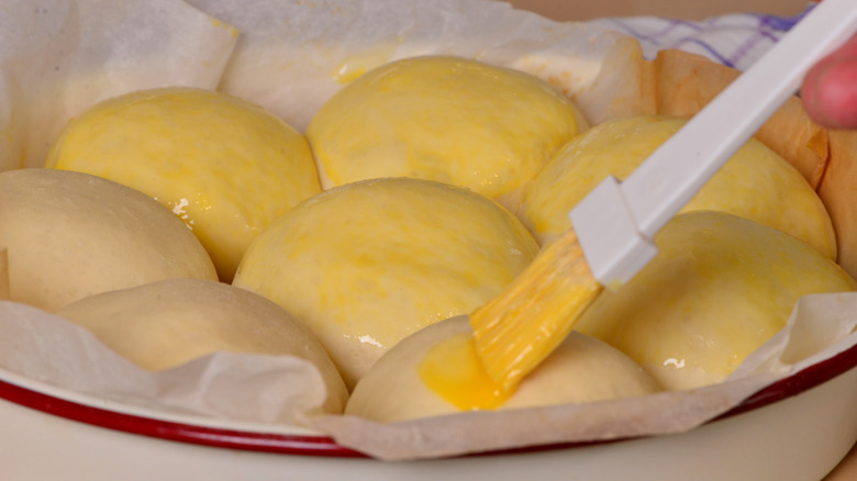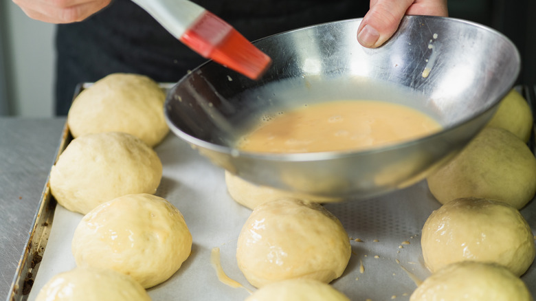 Whether you're baking a fresh batch of dinner rolls or a homemade pie, it won't be complete until you brush the top with egg wash before it goes into the oven. Skip this step, and the pastry will still taste perfectly fine, but it won't have a shiny, golden finish. If you don't have any eggs on hand, your first thought might be to reach for melted butter instead, but the truth is, it won't have quite the same effect.