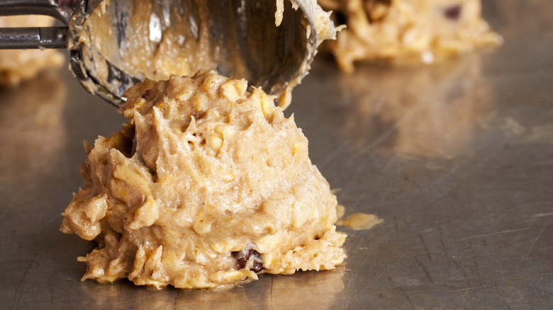 Since edible cookie dough isn't designed to be baked, it doesn't include ingredients like baking soda or eggs that are necessary in producing the bready, cakey texture cookies normally have. However, when it comes to cottage cheese cookie dough, it can actually be baked into a cookie, as another TikToker discovered. According to their video, you don't need to make any adjustments to the recipe (though they did swap coconut flour for almond flour to reduce the fat content). The dough doesn't appear to expand much in the oven, but it does successfully bake into cookies.