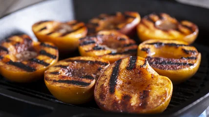 If you've never tried a grilled peach, there's no time like the present to give them a taste. Just like when you bake peaches in a pie, cobbler, crumble, or crisp, the heat brings out their natural sweetness, softens the texture, and breaks down the cells in the fruit to release the juices. When you grill your peaches, you also get some extra roasty, toasty flavors from the Maillard reaction, which is when the sugars on the surface of the fruit caramelize when they come into contact with the hot grill.