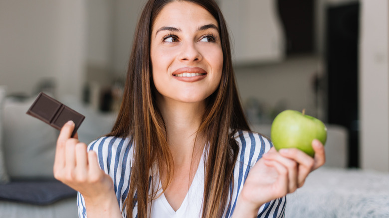 But even the darkest chocolate won't last forever without undergoing a few changes. If you've ever found an old piece of candy in the back of your cupboard, then you know that years-old chocolate can develop a chalky gray or white substance on its exterior. This isn't mold, and it won't make you sick, but it likely won't taste very good, either. Check for cracks or discoloration to ensure your chocolate is still good to eat.