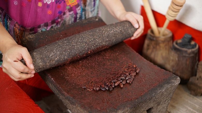 It's thought that the Olmecs were the first people to cultivate cacao and process it into an early form of chocolate. While there's no written record indicating such, pottery shards dating back as early as 1400 B.C. have been found to contain traces of chocolate. From there, the Mayans likely took up the practice — we can still see Mayan vase paintings depicting chocolate being used in ceremonies. Later, the Aztecs took cacao beans and chocolate as tribute from conquered tribes.
