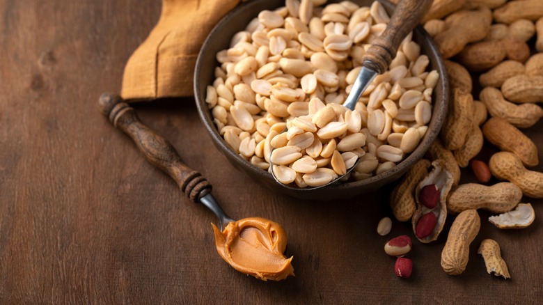 Peanuts also add fat and protein, making your ramen more filling. The nuts also contain a variety of other nutrients, helping to give your dish a quick healthy boost, according to Healthline. If you want to add a peanut flavor, but don't care about texture, peanut butter is another great ingredient to consider. Stirring a spoonful into your ramen broth gives it a creamy richness, as well as a naturally sweet quality that complements the savory and salty flavors which are already present in your dish.