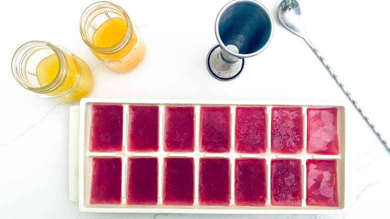As mentioned, the most prep work you'll need to do is make your cranberry ice cubes. Simply pour the cranberry juice into an ice tray and pop it in the freezer. It's best to let the cubes freeze for at least 4 hours, although you're welcome to leave the trays in the freezer for longer.