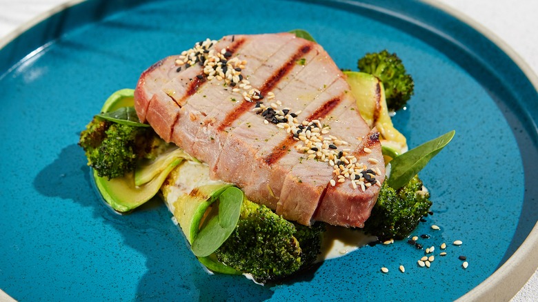 Swordfish, and other high-mercury fish, are also particularly dangerous if you're pregnant or breastfeeding, as they may impair the nervous system development of the baby, as stated on Healthline. People who are breastfeeding should limit their consumption of swordfish to once per week, and if you're pregnant or trying to conceive, it's best to avoid it entirely. All other adults should also eat no more than one portion weekly to stay on the safe side.