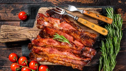 It may also be best to avoid bacon brands that use artificial ingredients or add hormones to their products. Appearance-wise, you should look for bacon that has long, consistent veins of meat, with a rosy pink hue, and slices that aren't overly fatty. Crucially, too, make sure that your bacon has been stored correctly in the supermarket. Avoid any packs that feel warm to the touch, and pick products that are well within their use-by date.