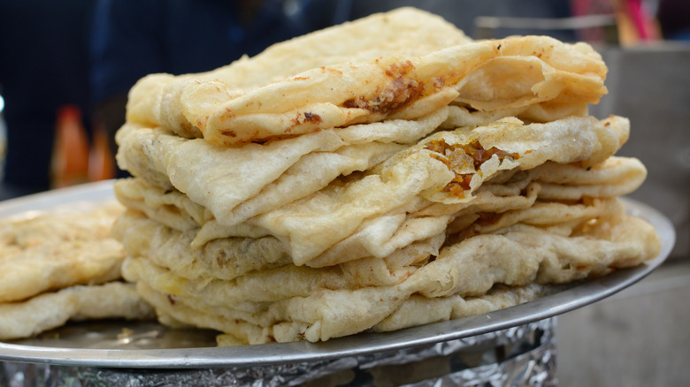 Across South Asia, parathas are a popular breakfast pastry. Usually crisp and flaky, these pastries are stuffed with all kinds of fillings, and Mughlai paratha is a variation that's especially popular in Bangladesh.