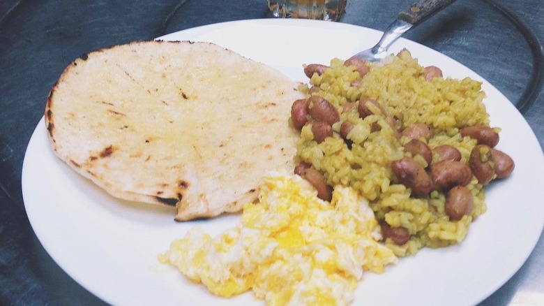 The word calentado just means "heated," but in Colombia the word refers to a specific kind of breakfast. It originates from the Andes, in a region where beans and rice are an essential part of everyone's diet, usually served at dinner time. Calentado was first created to use up any leftovers from the night before and avoid wasting food.