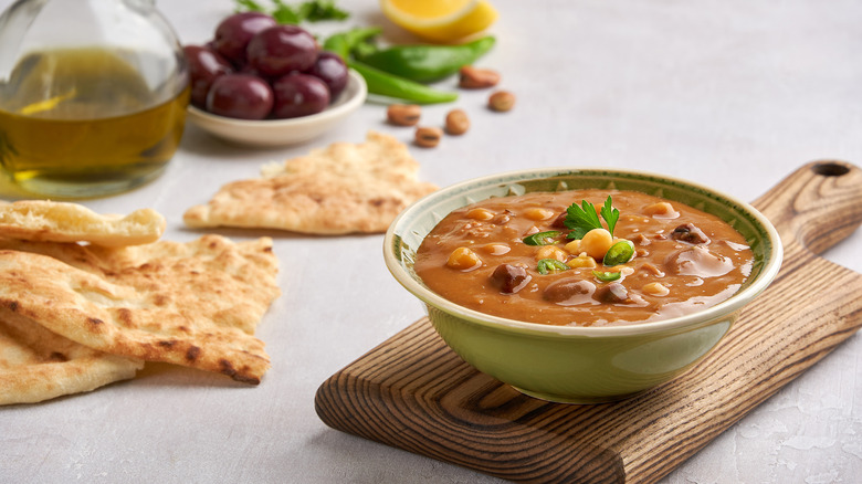 A dish with a long history, ful medames is a classically Egyptian breakfast dish. Often found on sale as street food, this is a slow-cooked stew of fava beans, flavored with olive oil, garlic, and spices.