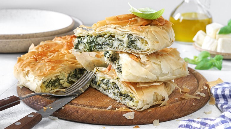 With its thin, flaky phyllo pastry, spanakopita is a firm favorite in Greece. Crispy on the outside, it's filled with feta cheese and minced spinach, and has a delightfully buttery taste. Full of energy without being too heavy.