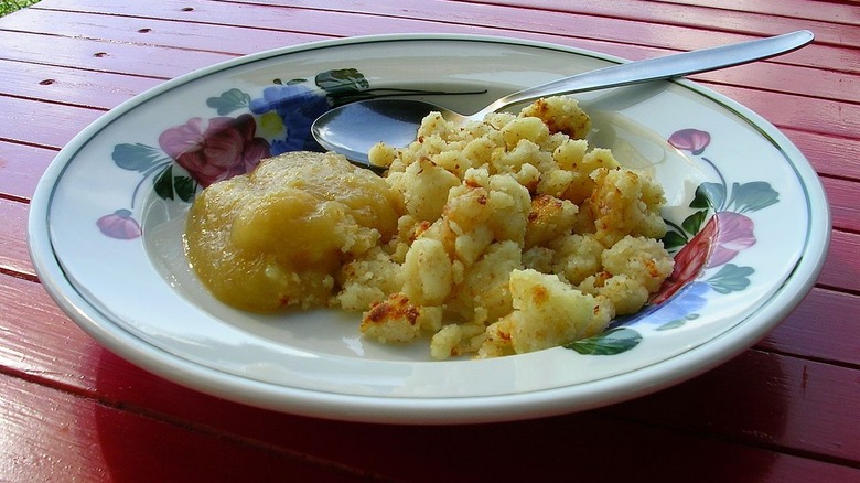 Historically, ribel has always been a breakfast food, though it's been served for other meals too during more difficult times, thanks to being so cheap to prepare. It's traditionally served with tangy fruit, such as apple sauce, boiled cherries, or elderberry compote.