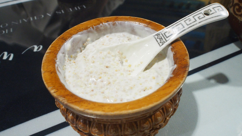 As well as millet, hausa koko is seasoned with ginger, cloves, and ground pepper. Made with milk and sugar, it has a sweet, creamy taste, and peanuts are a popular addition for extra flavor.
