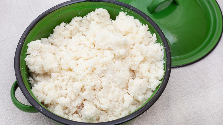 A small country in Europe, Liechtenstein can be found in the Alps sandwiched between Austria and Switzerland. Ribel is one of the best-known dishes there, traditionally enjoyed by the working classes. It's made with cornmeal and butter, with a texture a bit like couscous.