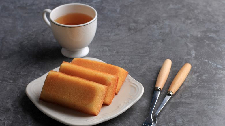 Financier cakes were first offered at a patisserie near the Paris stock exchange in the late 1800s. Cookbook author and baking expert Dorie Greenspan shares on her website that the pastry chef responsible for creating this cake was a man named Lasne. He wanted to create a pastry that would attract nearby bankers, so he decided to bake cakes to resemble ingots or bars of gold. Not only that, but because these bank employees were busy, he kept his bakes bite-sized and easy to eat without any utensils. Lasne aptly named them financier cakes. The name and the shape of the pastries were undoubtedly a draw for the bankers, but it was, of course, the taste of these cakes that made them a success.