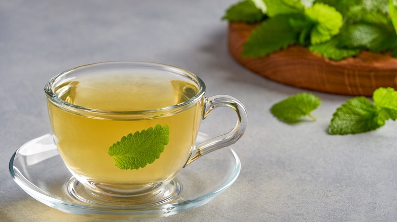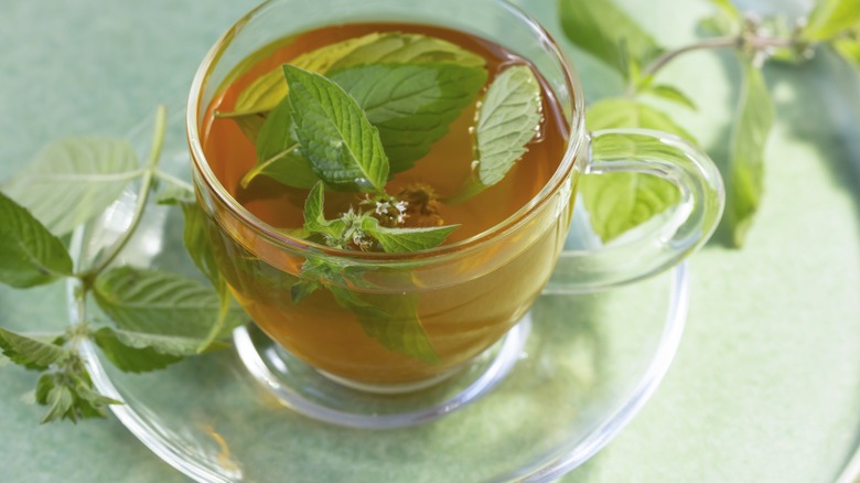 But the benefits don't stop there. If you experience migraines or tension headaches, the aroma of peppermint tea could help, since peppermint acts as a muscle relaxant, as Healthline explains. It could even ease your blocked sinuses, as the menthol in peppermint tea can make it feel as though it's easier to breathe. Finally, if you've been low on energy, sipping some peppermint tea could be the key to feeling more energetic. Some of the natural compounds that peppermint contains could be good news for energy levels.