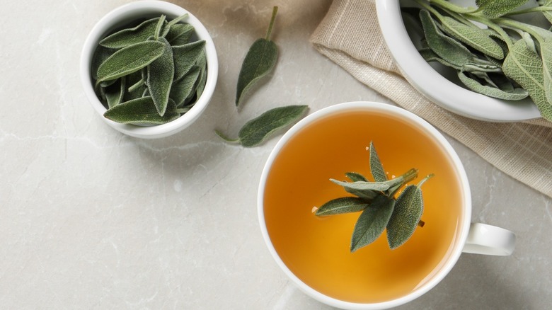 Sage is a member of the mint family, and its leaves have been used medicinally for centuries. You can make your own sage tea by steeping sage leaves — readily available in most grocery stores — in hot water, or buying tea bags. As well as being a refreshing drink, sage tea could boost your health in various ways.