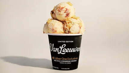 You can find the BBQ Gold Cornbread Crumble ice cream flavor on the UberEats app or inside any physical Van Leeuwen shop. To order online, search for a nearby Van Leeuwen location and just add the flavor to your cart. If you opt to visit in person, you can show your Uber One membership to an employee before purchasing. The pints cost $10.50.