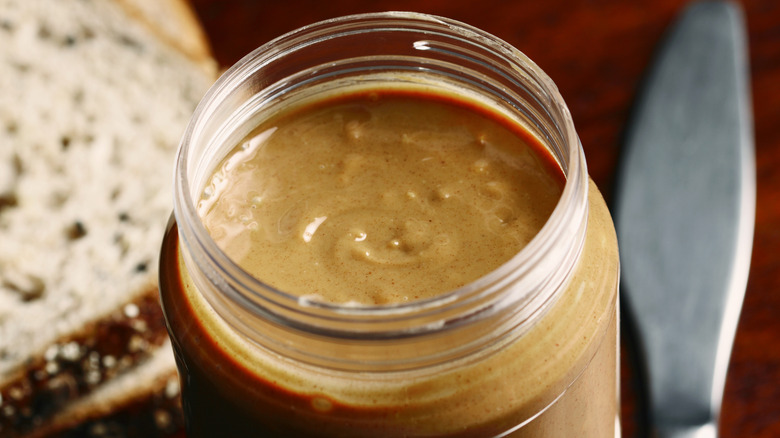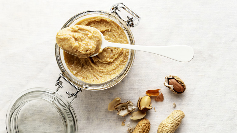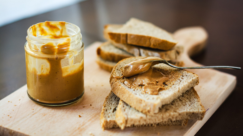 But natural peanut butter is different. These nut butters, which are usually just peanuts and salt, don't have the preserving capacity that the big brands have. "Because [natural peanut butter] does not have preservatives or stabilizers, it is best refrigerated to keep it fresh and to prevent the oil from separating out," says Margarethe A. Cooper via Martha Stewart. Keeping it in the fridge can help to slow any microbial action, stopping the peanut butter from growing mold. Additionally, "the separated oil in unrefrigerated natural peanut butter is more likely to become rancid sooner, leading to unpleasant taste and texture," Cooper says. Luckily, once your natural peanut butter is in the fridge, it'll stay edible for up to a year — but it's best to eat it within a few months, Cooper states.
