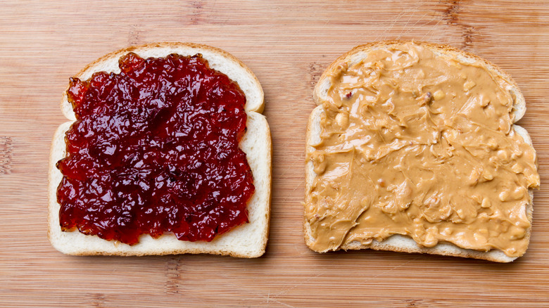 For a next-level breakfast, try making PB&J stuffed French toast by making the sandwich, crimping its edges, and then coating the whole thing in your custard mixture before cooking. You can also try replacing the bread with something else entirely — try putting your filling between two waffles. Don't forget, too, that a PB&J can serve as a base on which you can put other toppings. For extra sweetness and some fiber and vitamins, add some fresh sliced fruit like strawberries or bananas. Or, to go all-out on flavor and indulgence, try adding cheese to your PB&J and grilling it.