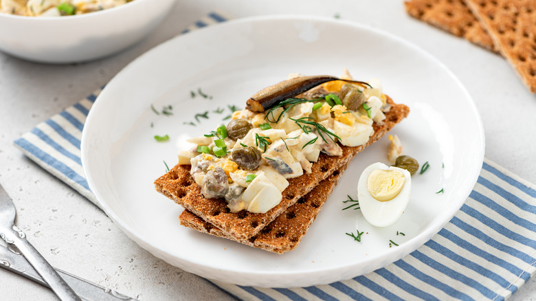 In some versions of the dish, potatoes are added to make it more hearty. While some variations swap the anchovies for pickled herring. Gubbrora tastes like a unique egg salad with a salty finish, thanks to the briny fish. It is served on rye crackers or bread.