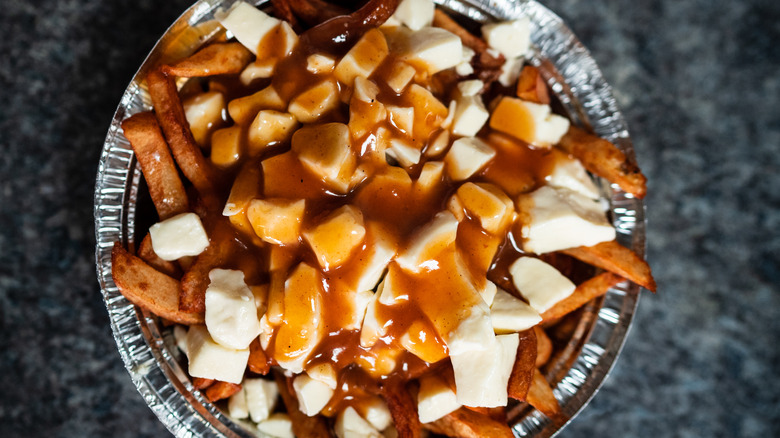 While poutine is technically a dish, poutine gravy is a unique sauce that's used somewhat like a dip. The brown gravy is made with chicken or beef stock, tomato paste, cornstarch, vinegar, and Worcestershire sauce. It also has more acid from the vinegar and tomato paste. Some believe the tomato paste is due to early poutine adopters adding ketchup to their poutine mix. The acid gives poutine gravy a punchier flavor than regular brown gravy.