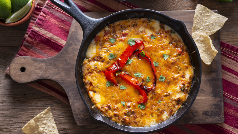 This dip is then usually topped with chorizo, grilled peppers, or mushrooms. Queso fundido is served hot, often with warm corn tortillas and fresh salsa. It is Mexican comfort food at its finest and is made to be shared.