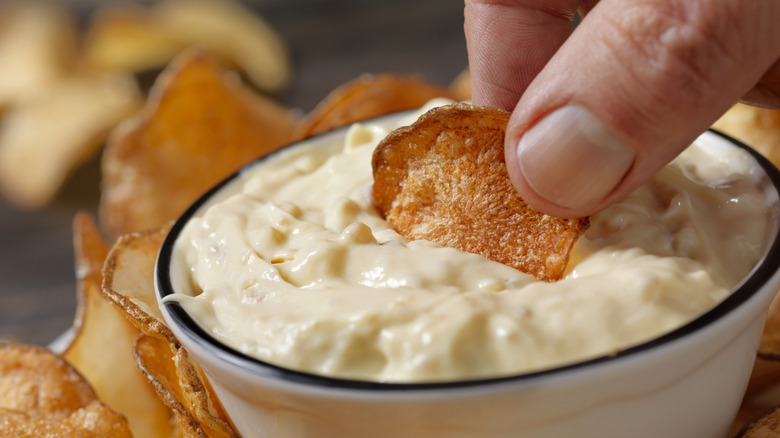 Mashed potatoes are creamy, hearty, delicious, and comforting. Despite being perceived as a straightforward dish, there are common mistakes you need to avoid that can occur during its preparation. Alongside these more conventional missteps is one that may be likened to thinking outside the box. If you have never considered adding dip to elevate mashed potato flavor, now is the time. French onion dip in particular is a spectacular addition to your potatoes as the onions bring a tanginess, while the base of the dip and the inclusion of cream cheese brings real silkiness to the potatoes.