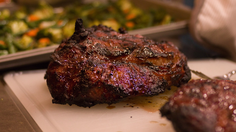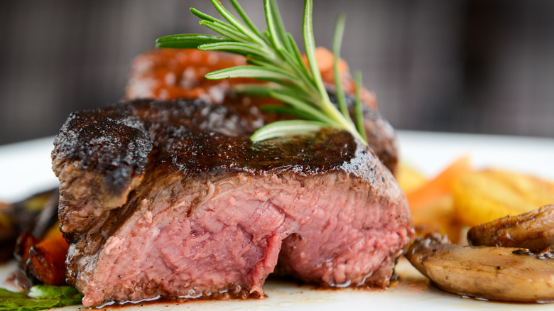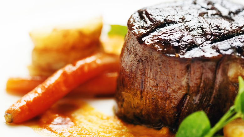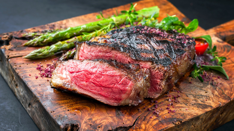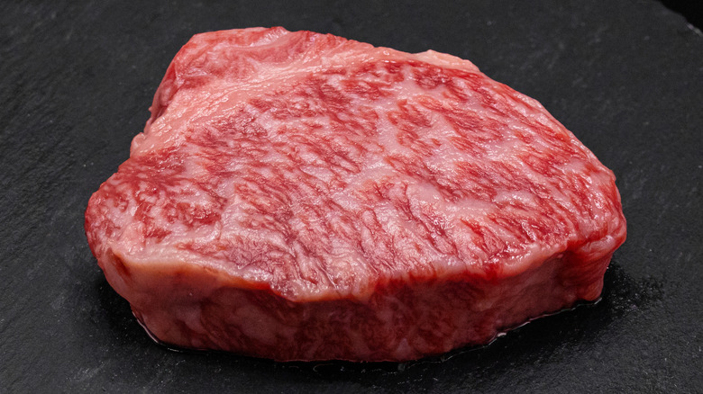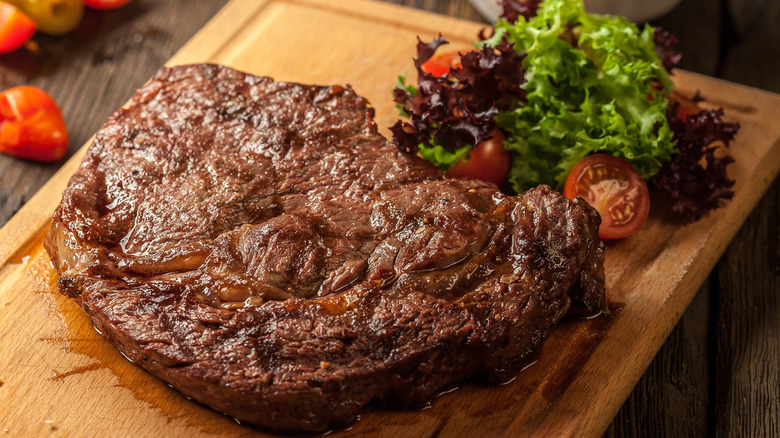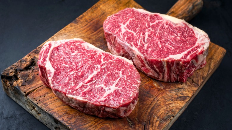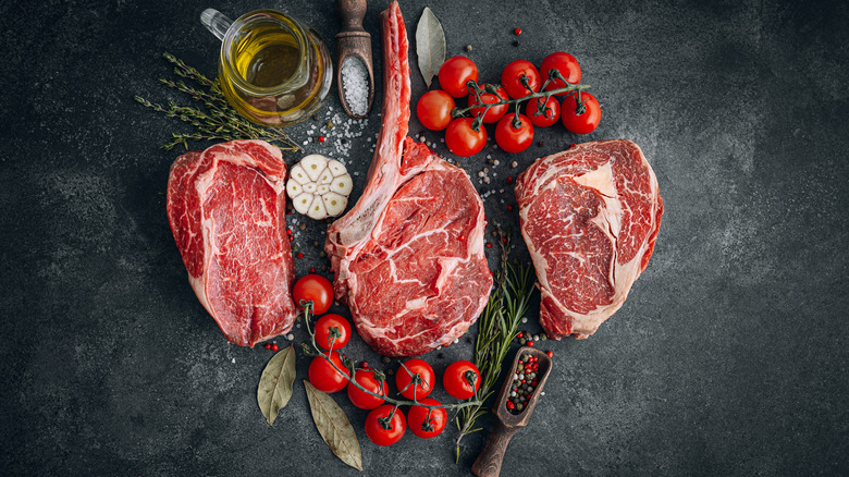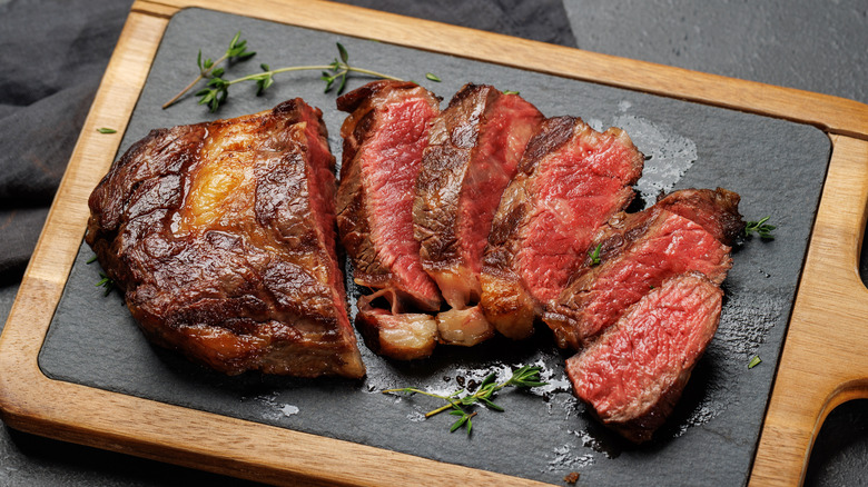 Interestingly, however, while tenderness is one sign of a more expensive steak, grass-fed beef tends to have less marbling, a gamier flavor, and overall be a bit less tender, helping to underscore why tenderness isn't the only factor when it comes to cheap versus expensive steak. Restaurant menus, grocers, and butchers tend to highlight when their beef is grass-fed, making it obvious that it's more expensive. But, if your steak seems particularly lean and has that gamier flavor, chances are it'll be on the more expensive side (even without the grass-fed label).