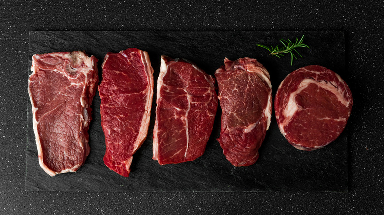 While the word steak is not exclusive to beef (after all, there are tuna steaks, salmon steaks, venison steaks, and more), most of us think of beef when we think about steak and that's what we're talking about here. Even within the realm of beef steak, there are many different cuts available and each cut has some unique characteristics that help determine not only the flavor of the meat and how it's used, but also the price of said steak.