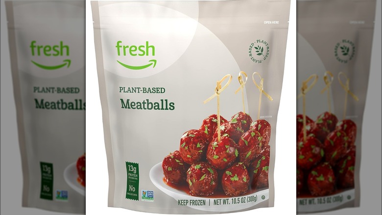 Fresh by name, fresh by nature? That's the promise that Amazon seems to make with its Amazon Fresh line, which works to get your groceries on the table fast, with no impact on quality or taste. But just because its Plant-Based Meatballs arrive at your door ready to go, doesn't mean they haven't been through a lot of processing first. These meatballs are full of processed ingredients, like enriched wheat flour, methylcellulose, and wheat gluten, all of which are designed to give the product a more consistent, satisfying texture.