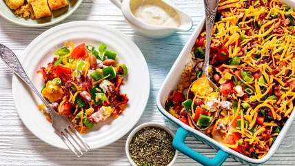 For those of us who may be new to Southern cooking, cornbread salad is exactly what it sounds like. This intriguing dish is composed of cornbread, plus some typical salad ingredients, including pinto beans, corn, bell peppers, tomatoes, shredded cheese, bacon, and of course, hearty cubes of cornbread. The mixture is then completed with a healthy drizzle of creamy ranch dressing. This salad is known to be a great meal to prepare when you need to figure out what to do with leftover cornbread or when you're in the heat of summer. So now that you know exactly what cornbread salad is, what does it taste like, and more importantly, is this epic mixture of tasty ingredients actually even a salad?
