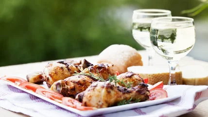 Chardonnay seems to be the workhorse of the wine world; it's a crowdpleaser that compliments a large swathe of dishes. Although no two bottles are the same, chardonnay tends to be a dry, medium-to-full-bodied wine that is rich, crisp, and buttery; it contains a multitude of possible notes (many on the fruity side, and again, depending on the bottle and/or vintage). To make things interesting, there are also variations depending on whether your bottle of chardonnay is oaked or unoaked. An oaked chardonnay is considered a fuller-bodied wine, while unoaked chardonnay, typically fermented in stainless steel, tends to have a crisper taste. Irrespective, this crisp acidity provides a refreshing contrast to a range of chicken and turkey dishes, from grilled chicken salad to roast turkey.