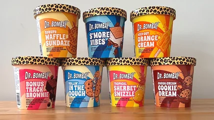 Dr. Bombay's Syrupy Waffle Sundaze ice cream is a mixture of waffle ice cream, waffle pieces, and brown butter swirl. Overall, this one was a lot to take in. The syrup flavoring definitely stole the show, as it's drenched on top of the ice cream and throughout. But it was so overpowering that it felt like you were literally eating maple syrup. If this is your thing –- cool –- but we weren't a fan.
