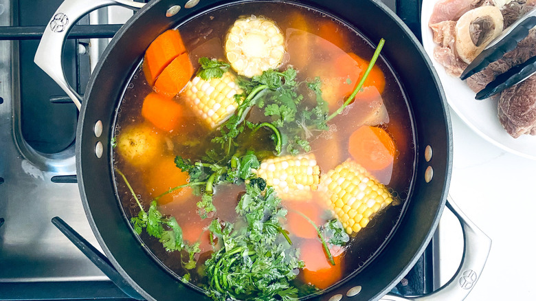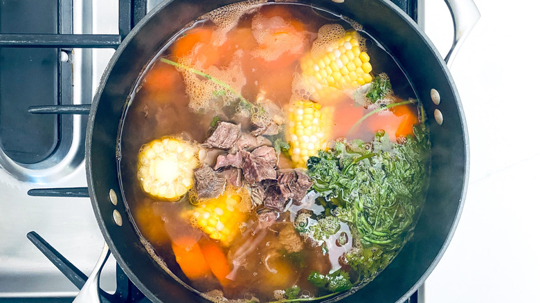 If you are wanting even more protein in this dish or are serving it to a larger crowd, now is the time to bulk it up. Vergara notes, "If you want more meat in the soup, I would double the amount of beef shank."