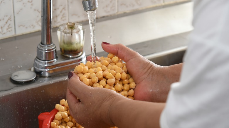 Using dried chickpeas also allows you to better control the texture of the legume you're using. Canned chickpeas can vary widely in quality and firmness, and some can be incredibly soft — and you won't know this until you've opened up the can itself. And it's important to remember that canned chickpeas won't just be the chickpea and nothing else. The processing that occurs to these legumes can result in a large number of additives being thrown in and a surprising amount of sodium ending up in the can. This can not only throw your nutritional targets off, but it may end up making your hummus taste overly salty or bitter, particularly if you don't adjust your seasonings to account for it.