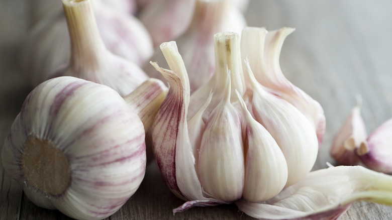 Using damaged garlic, too, could have an impact on your hummus. You should select your garlic heads for their firmness, opting for solid-feeling plants that don't give off any noticeable or pungent smells. Once you've peeled your garlic cloves, they should be a solid white and firm throughout, with no sprouting or discoloration.