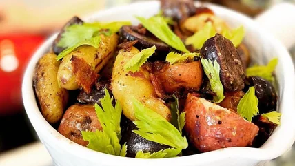 Now, mix another ⅛ cup of olive oil, one teaspoon each of oregano and parsley, and another two cloves of minced garlic in a separate bowl along with one tablespoon of mustard, ¼ cup of sliced scallions, and two tablespoons of minced shallots. Add the now-grilled potatoes to this mix, squeeze a lemon wedge over them, and toss everything together. Then, serve your potato salad to your hungry friends and family!