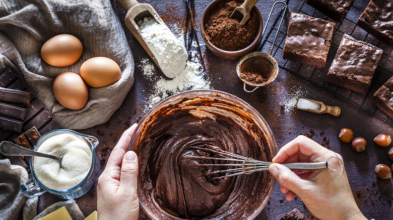 The good news is that there's a hack you can use to get around this and keep your brownies moist and delicious — adding mayonnaise. Mayonnaise helps keep your brownies soft and prevents them from getting too dry. Even though it sounds odd, you won't taste the mayonnaise in the brownies. Better yet, you can actually use this trick in your boxed brownies, too, although it's not usually needed.
