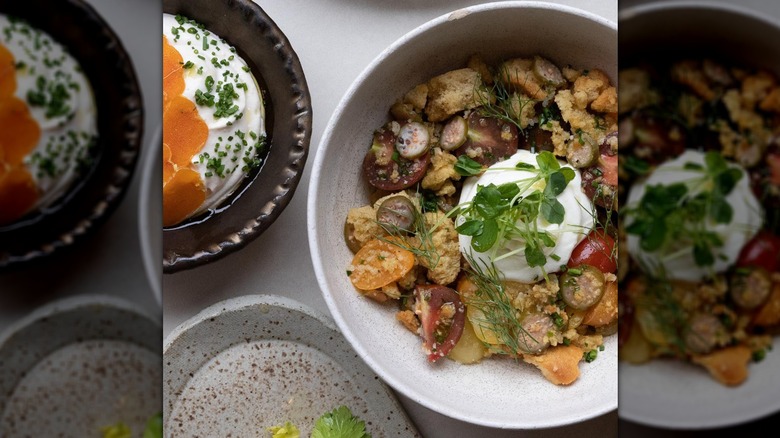 Try the Farm Vegetable Shakshouka with feta and vegetables, the Pickled Corn Biscuits & Gravy made with Thai sausage, or the crispy, delicious Sweet Corn Pancakes with honey, ricotta, and roasted cherries. The N.Y. Strip Steak and Eggs Benedict dish also looks pretty awesome, with herb hollandaise, bacon jam, and cornbread.